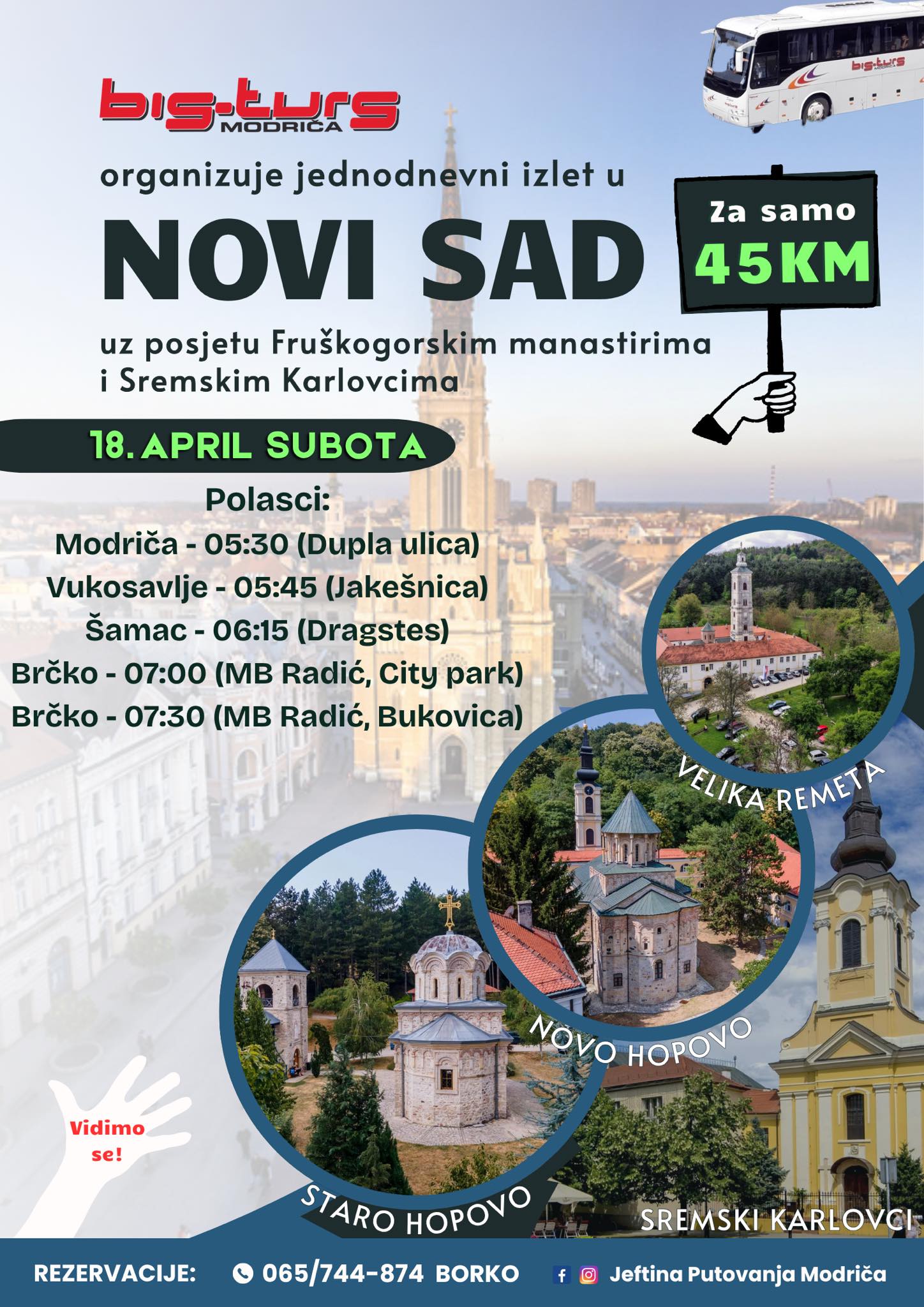 Bez obzira da li putujete poslovno, turistički ili u posjetu porodici i prijateljima, Jeftina putovanja Modriča su pravi izbor za sigurno i povoljno putovanje. Naš tim stoji vam na raspolaganju za sve informacije, rezervacije i organizaciju putovanja prema vašim potrebama.